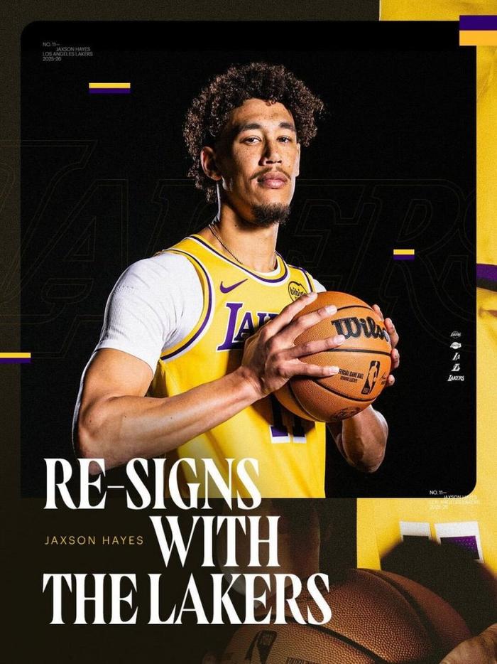 天,湖人官方宣布球队与中锋海斯完成续约。