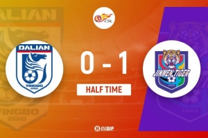 伤停补时2分钟。上半场比赛结束,大连英博0-1天津津门虎。